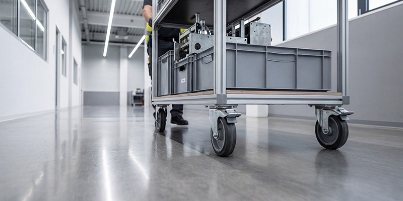 Factory floors, typically made of concrete, create constant friction and wear on caster wheels. Over time, poor material selection can lead to flat spots, cracking, or increased rolling resistance. Durable wheel materials that resist abrasion are essential in these conditions. Smooth rolling performance is also important, as it reduces the force required to move equipment and improves overall workflow efficiency.
